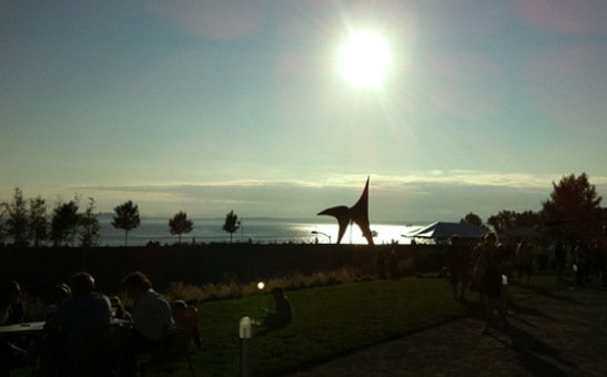 Experience art while enjoying the view of Olympic Mountains, Puget Sound and Space Needle from the park.